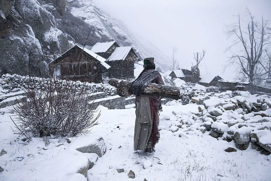 Giải ba (Chủ đề con người) thuộc về tác phẩm Remote life at -21 degree - của tác giả Mattia Passarini. Bức ảnh ghi lại công việc của một phụ nữ sống ở làng Mimachal Pradesh (Ấn Độ) đang vác củi về nhà để đốt sưởi ấm trong cái lạnh -21 độ C.