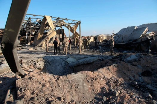 Các binh sĩ Mỹ tại khu vực căn cứ không quân Ain al-Asad bị Iran ném bom ở Anbar, ngày 13-1-2020. Ảnh: AP
