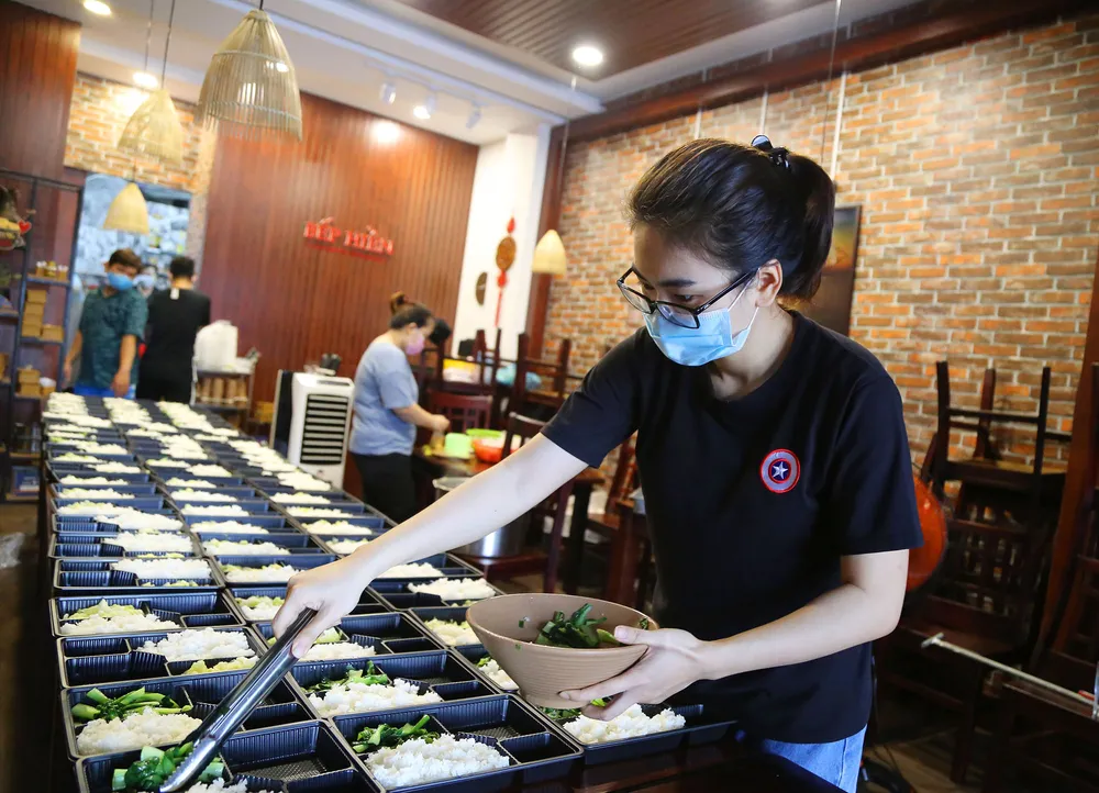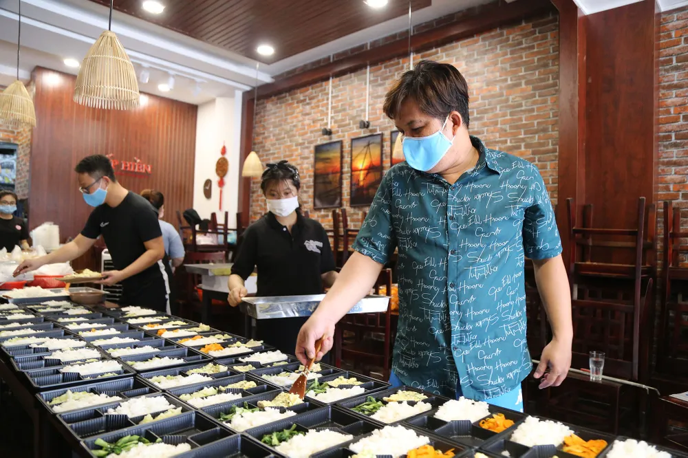 Tuy nhiên, trong lúc khó khăn tưởng chừng bế tắc ấy, chị Yến Anh - bạn đồng hành với anh đề nghị hỗ trợ anh một phần kinh phí, góp tiền góp sức cùng anh giữ lửa nhà hàng, thay vì bán hàng như trước thì sẽ nấu cơm gửi tặng lực lượng chống dịch, thay cho lời động viên để họ tập trung công tác.