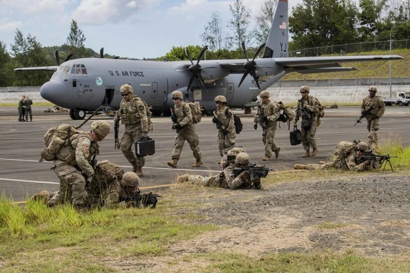 Binh sĩ Mỹ tại sân bay quốc tế Palau vào ngày 13-4-2019. Ảnh: U.S. INDO-PACIFIC COMMAND