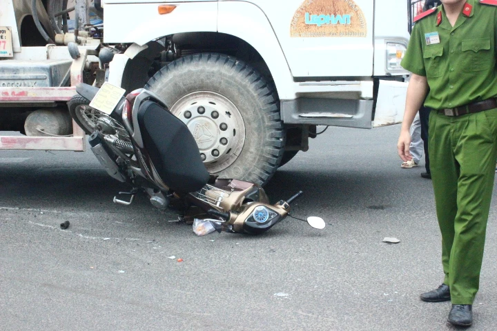 Sau va chạm, xe máy bị bánh xe bồn cán nát phần đầu. Trong khi đó, chị Phượng cùng hai cháu nhỏ bị văng sang bên phải đường nên may mắn thoát nạn. Ngay lập tức hai em được người dân đưa đi cấp cứu còn chị Phượng chỉ bị xây xát nhẹ ở chân.