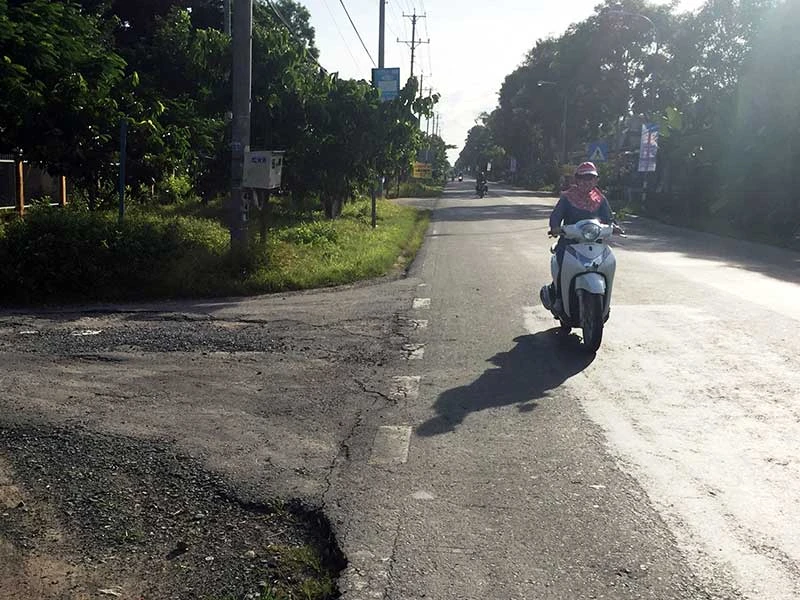 Hiện trường nơi Phong té xe dẫn đến tử vong. Ảnh: T.TÙNG