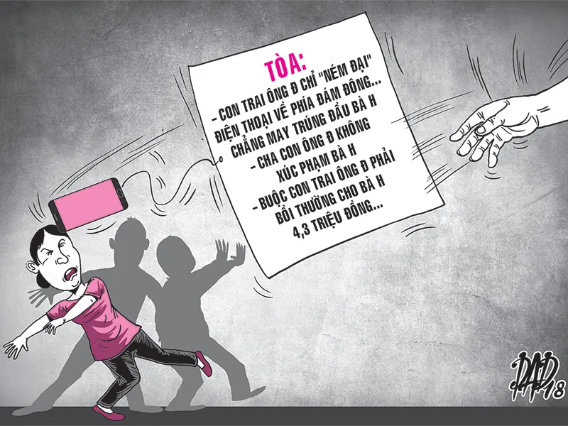 Tại phiên xử phúc thẩm mới đây, TAND tỉnh Bà Rịa-Vũng Tàu nhận định người phải bồi thường cho bà H. là con trai ông Đ. Về phần ông Đ., không có căn cứ xác định ông có hành vi gây tổn hại sức khỏe cho bà H. nên không có cơ sở để buộc ông phải bồi thường. Bởi lẽ công an phường xác nhận ông Đ. không đá bà H. như bà trình bày. Theo hình ảnh và qua giám định thì bà H. cũng chỉ có một vết thương duy nhất ở phần mặt với tỉ lệ tổn thương là 2%, hoàn toàn phù hợp với việc con trai ông Đ. dùng ĐTDĐ ném trúng mặt bà.