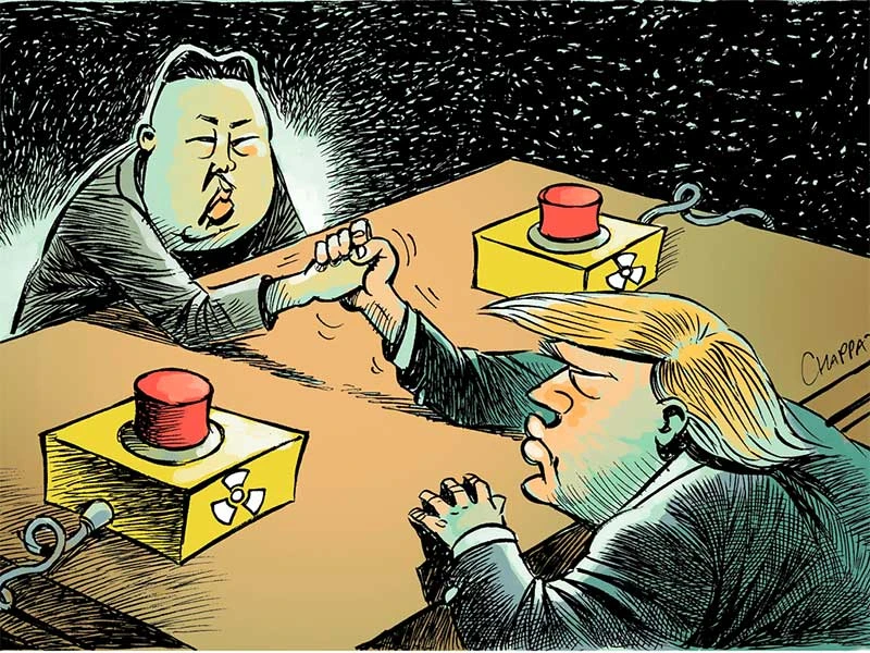 Cuộc đấu giữa Donald Trump và Kim Jong-un theo biếm họa của Patrick Chappatte người Thụy Sĩ gốc Lebanon.
