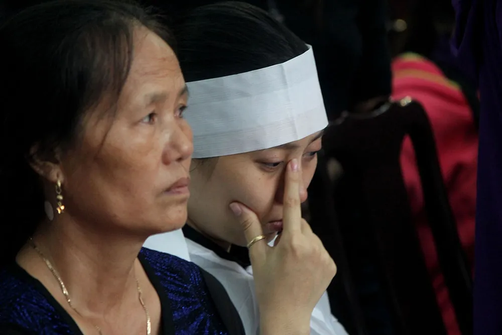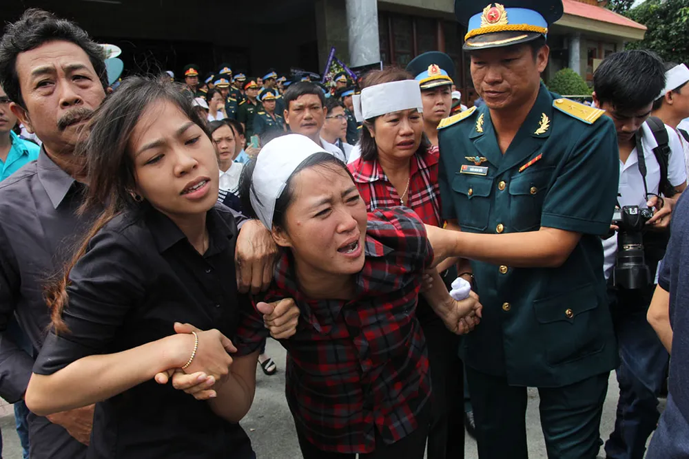 Mẹ anh Dương Lê Minh khóc ngất, "Nó mới về cách đây hai tuần rồi, rồi nó đi luôn không về như ba nó ngày trước". Vì quá xúc động, mẹ của sĩ quan Minh nhiều lần được đưa ra ngoài nghỉ ngơi.