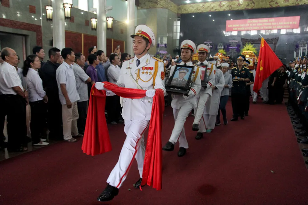 Đại tá Vi Công Dũng, Chính ủy Binh đoàn 18, Phó trưởng ban tang lễ, đọc điếu văn truy điệu các liệt sĩ