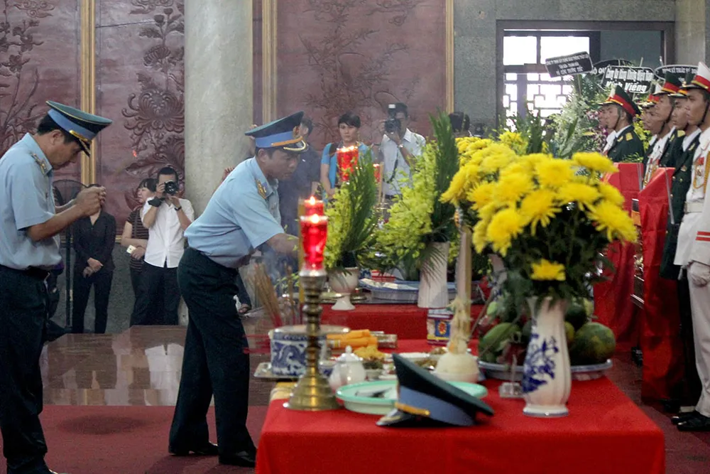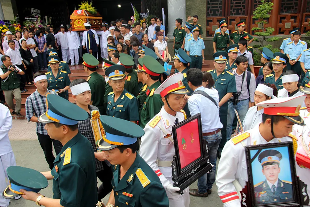 Từ 7 giờ sáng, các đồng đội từ Bộ Quốc phòng, Bộ Tổng Tham mưu, Quân chủng Phòng không không quân, Quân chủng Hải quân, Quân khu 7, Bộ Tư lệnh Cảnh sát biển... đã đến viếng và chào tiễn biệt các anh.