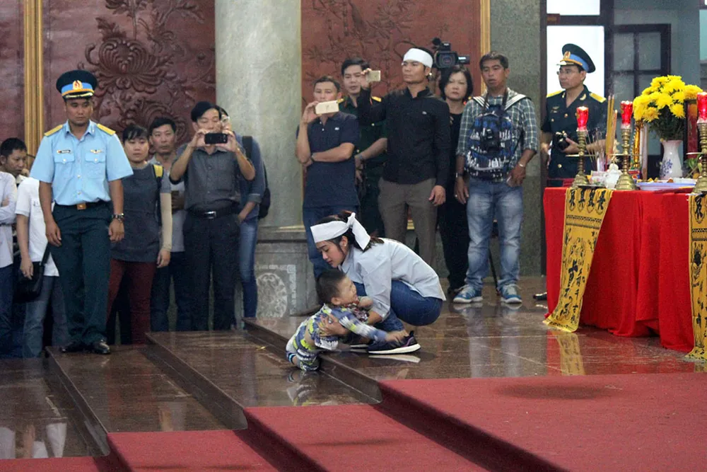 Trong giờ viếng, đứa con trai của thiếu tá Dương Lê Minh luôn đòi lên gần linh cữu của bố.