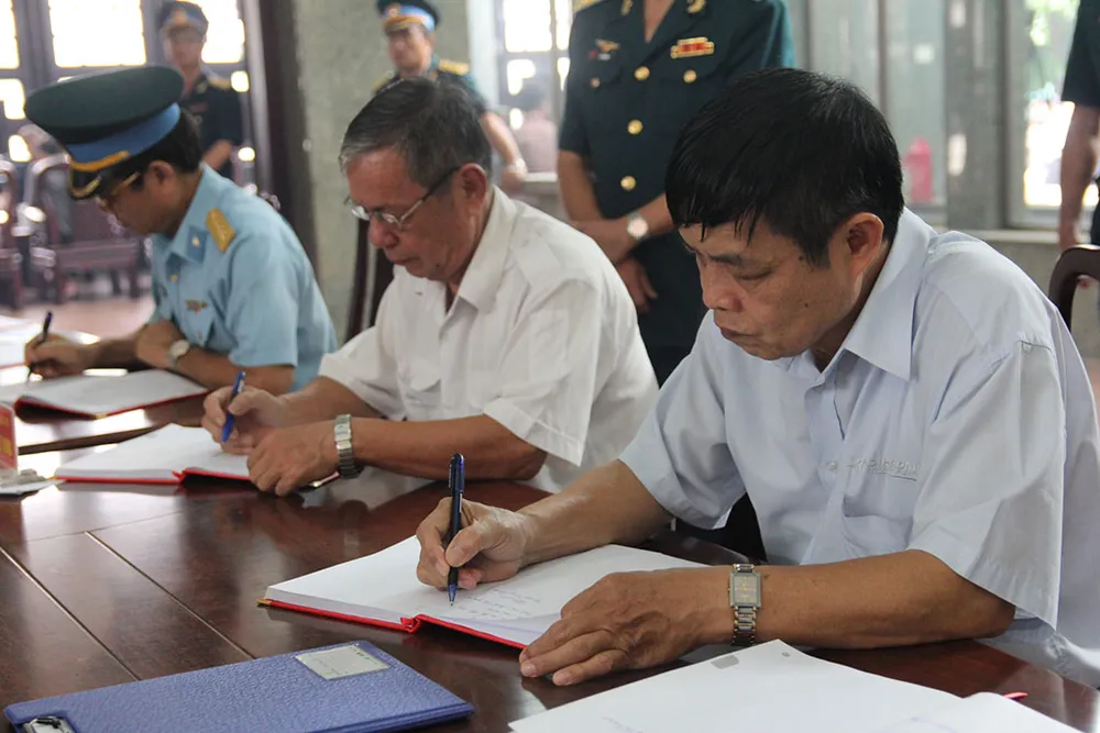 Người đến viếng viết sổ tang viếng ba liệt sĩ phi công