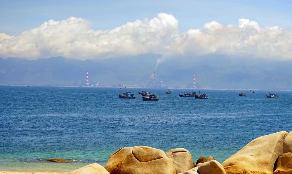Trung tâm Điện lực Vĩnh Tân nhìn từ Hòn Cau. Ảnh: PN