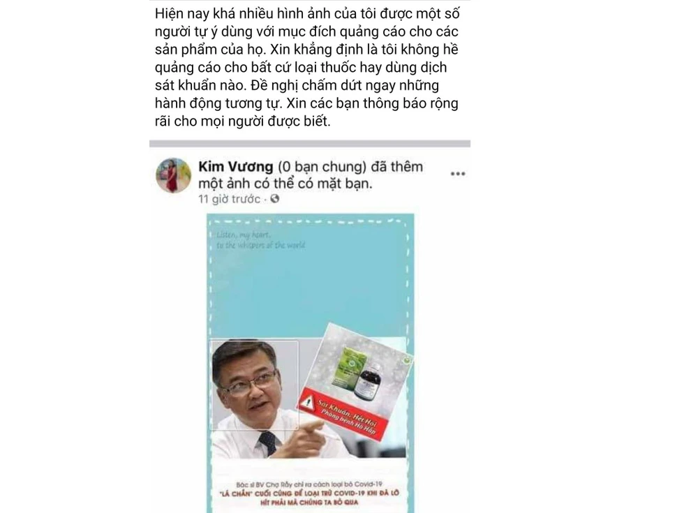 Bác sĩ Lê Quốc Hùng thông báo một tài khoản Facebook mạo danh mình để quảng cáo thuốc