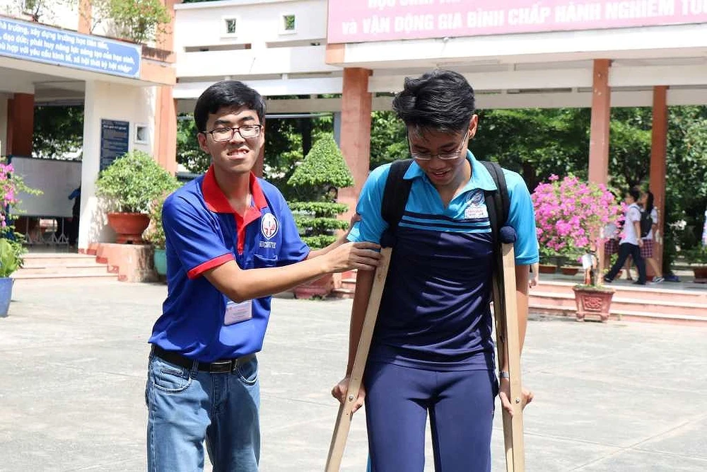 Tương tự, tại điểm thi THPT Nguyễn Hữu Huân (quận Thủ Đức, TP.HCM), thí sinh Nguyễn Phi Hùng (THPT Thủ Đức) bị tai nạn chấn thương ở chân trước kỳ thi.