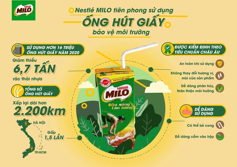 Với việc áp dụng ống hút giấy cho dòng sản phẩm MILO Bữa sáng, theo ước tính, trong năm 2020, Nestlé MILO sẽ đưa vào sử dụng hơn 16 triệu ống hút giấy, tương đương với việc sẽ giảm thiểu 6,7 tấn rác thải nhựa. Số lượng ống hút giấy này nếu được xếp nối tiếp nhau sẽ dài hơn 2.200 km, tương đương gấp 1,5 lần khoảng cách từ TP.HCM đến Hà Nội. Đây là một bước tiến quan trọng của Nestlé MILO hướng đến một tương lai không rác thải nhựa, giúp xây dựng môi trường xanh và sạch hơn.