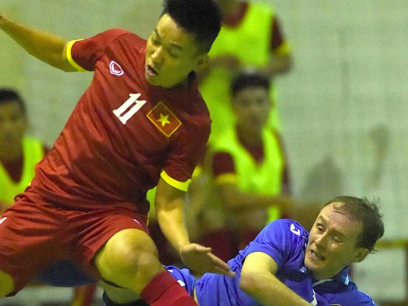 Futsal năm nay được tôn vinh như bóng đá sân cỏ nên ban tổ chức phải sắm thêm một bộ bóng vàng, bạc, đồng. Ảnh: QUANG THẮNG