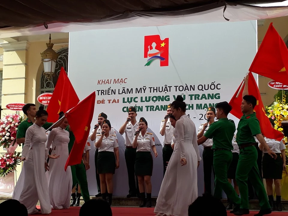 Triển lãm trưng bày 150 tác phẩm của 142 tác giả trong và ngoài quân đội tham dự Cuộc vận động sáng tác mỹ thuật toàn quốc về đề tài Lực lượng vũ trang và chiến tranh cách mạng giai đoạn 2014-2019. Các tác phẩm trưng bày được chọn bởi Hội đồng xét, trao Giải thưởng Văn học nghệ thuật, báo chí của Bộ quốc phòng.