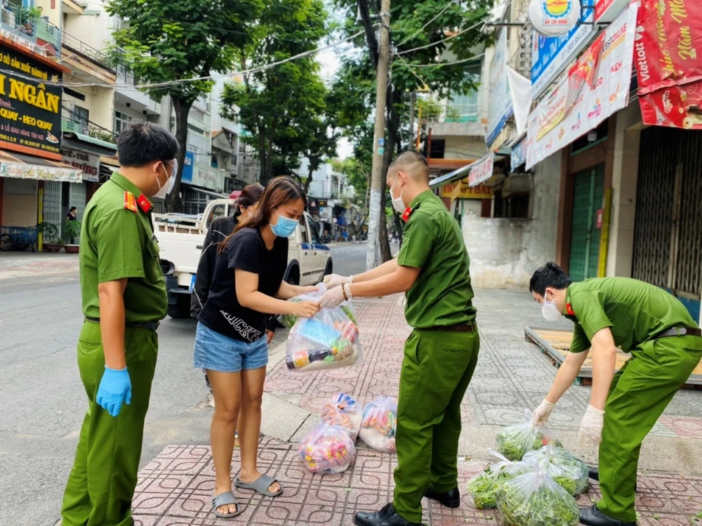 Công an phường Đa Kao tích cực vận động các mạnh thường quân hỗ trợ, chăm lo cho người dân. Ảnh: PHAN NHUNG