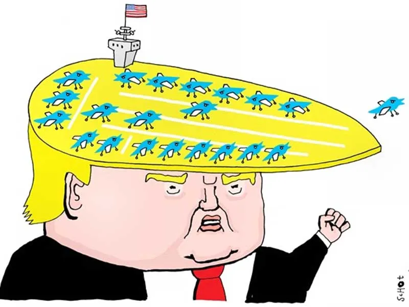 Tổng thống Trump quyết định điều tàu sân bay đến bán đảo Triều Tiên. Biếm họa của SCHOT, báo De Volkskrant (Hà Lan)