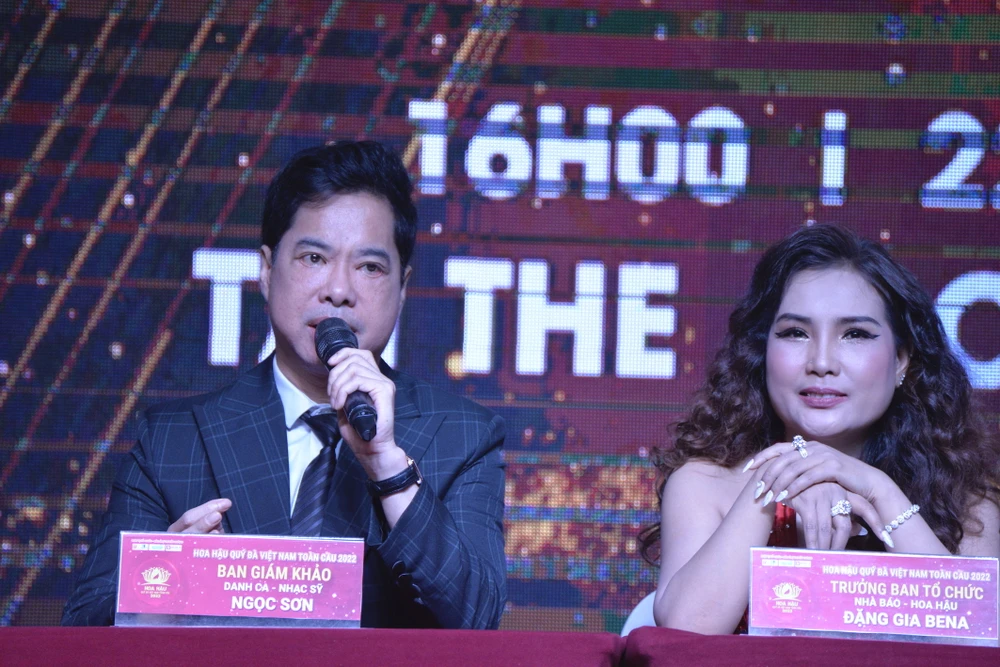 Hoa hậu Đặng Gia Bena- Trưởng Ban tổ chức cuộc thi và danh ca Ngọc Sơn. Ảnh: NGUYỄN TRÀ