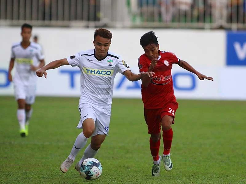 HA Gia Lai đang rơi dần xuống dưới sau những trận thi đấu thật khó khăn và chưa thể hiện được sức mạnh tại sân chơi V-League. Ảnh: TRÂM ANH