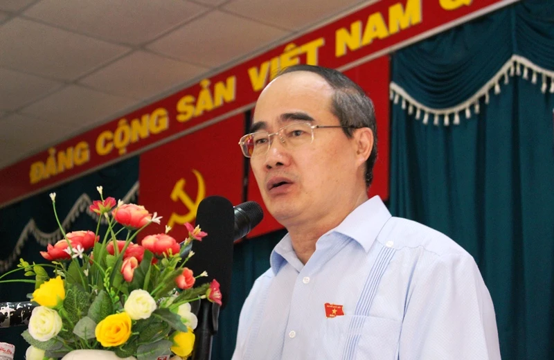 Bí thư Nguyễn Thiện Nhân chia sẻ với cử tri về dự án bỏ hoang 13 năm. Ảnh: QUỐC VŨ