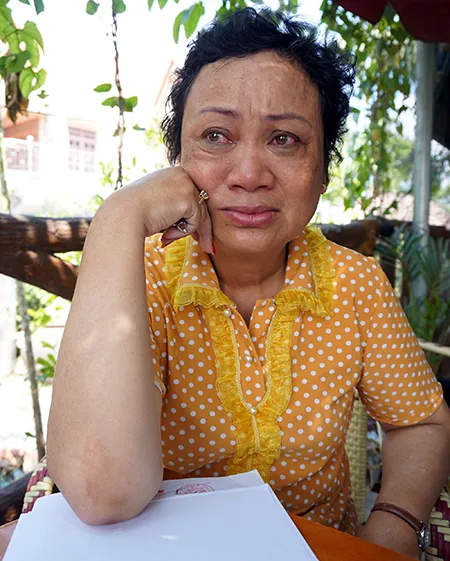 Bà Trần Thị Huệ nghẹn ngào khi trình bày sự việc. Ảnh: N.NGA