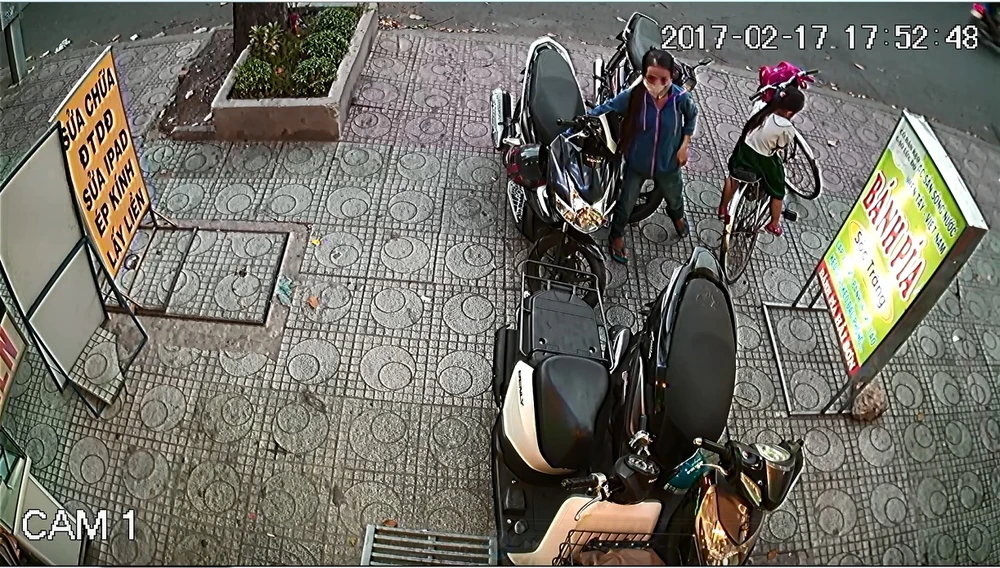Mọi người đều nghĩ chắc nghiện ngập dặt dẹo gì mới đi trộm mũ bảo hiểm, ai dè mở camera theo dõi thì phát hiện thủ phạm là người đàn bà bịt khẩu trang kín mít, đi xe đạp chở bé gái ngồi sau xe.