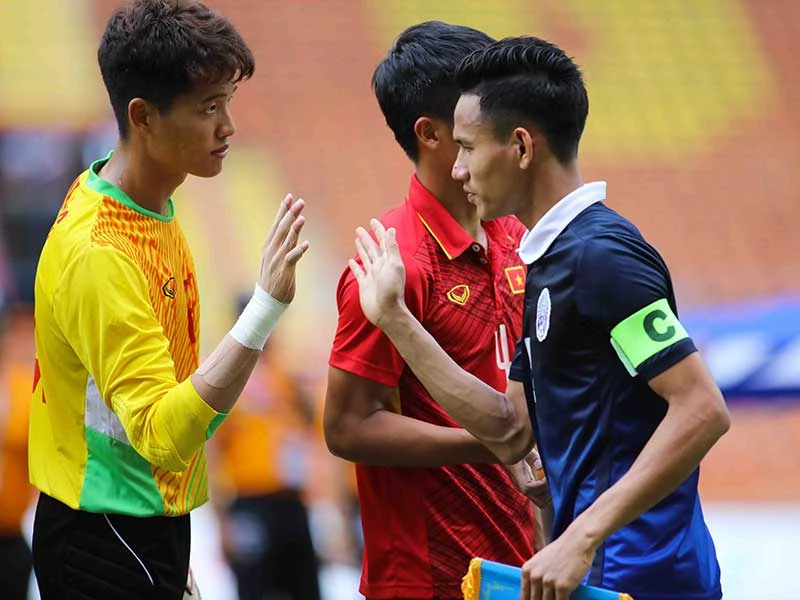 Bóng đá Campuchia tuy thấp hơn nhưng đang có sự tiến bộ rõ rệt để thu hẹp khoảng cách. Ảnh: HUY PHẠM