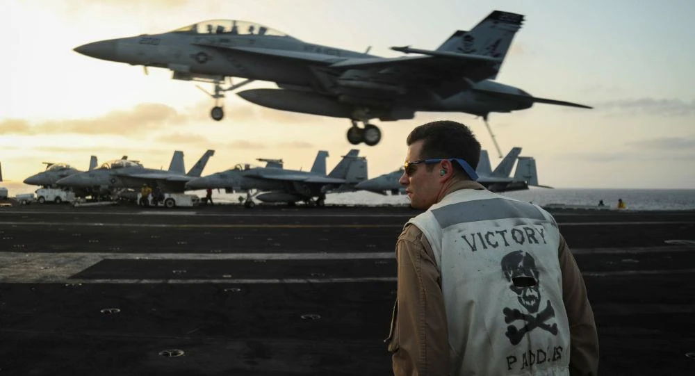 Tiêm kích F/A -18F Super Hornet trên sàn tàu sân bay USS Abraham Lincoln của Mỹ ở biển Ả Rập. Ảnh: REUTERS