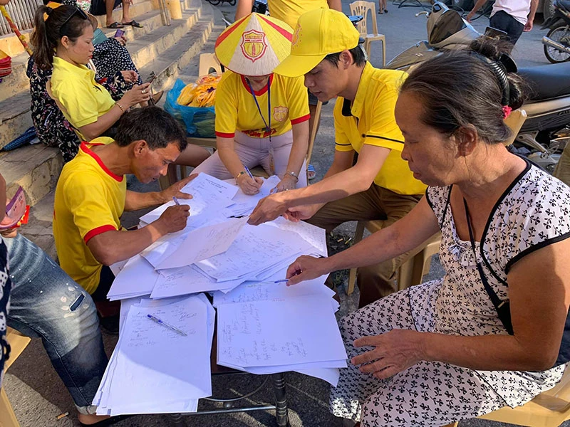 Cổ động viên Nam Định ký đơn tập thể mong đội bóng đừng bị cướp điểm nữa. Ảnh: CCT