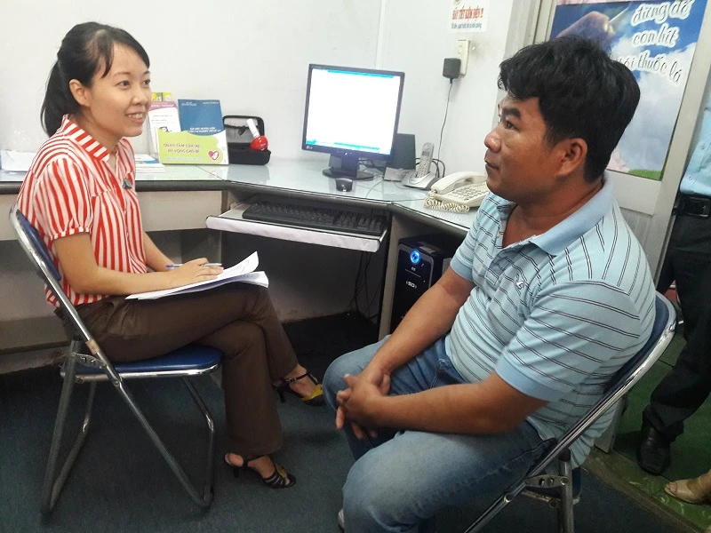 Người hút thuốc lá đầu tiên được tư vấn cai nghiện tại T4G sáng 24-8. Ảnh: HÀ PHƯỢNG