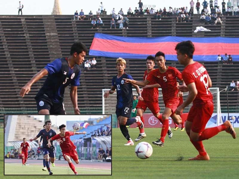 Trận U-22 Việt Nam - U-22 Campuchia tẻ nhạt nhưng với bàn thắng ở cuối trận của Lê Xuân Tú giúp Việt Nam nhận HCĐ. Ảnh: TTVH