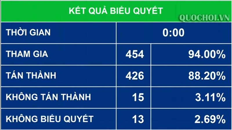 Các đại biểu Quốc hội biểu quyết thông qua Luật sửa đổi, bổ sung một số điều của Luật Cán bộ, công chức và Luật Viên chức (ảnh nhỏ: Bảng tỉ lệ ĐBQH bấm nút, tỉ lệ tán thành). Ảnh: TTXVN