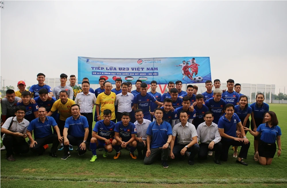 Chiều qua (30-7), trước thềm giải bóng đá Quốc tế U-23 – Cup VinaPhone 2018, đại diện cho Tập đoàn VNPT, ông Nguyễn Trường Giang - Phó Tổng Giám đốc VinaPhone cùng ông Nguyễn Minh Châu - Phó tổng thư ký Liên đoàn Bóng đá Việt Nam (VFF) đã tới sân tập của đội U-23 Việt Nam để trao tận tay các cầu thủ món quà bằng hiện vật và những lời chúc ấn tượng của người hâm mộ.