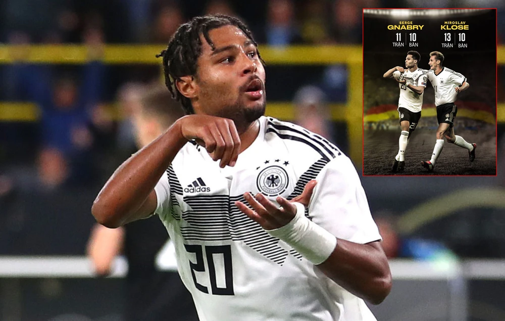 Gnabry vượt Klose về hiệu suất ghi 10 bàn nhanh nhất ở đội tuyển Đức. Ảnh: REUTERS