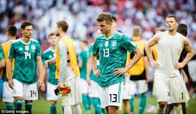 Tuyển Đức đã kết thúc hành trình World Cup 2018 theo cách không thể nào tồi tệ và cay đắng hơn. Nhà ĐKVĐ thế giới thua Hàn Quốc 0-2 sau hai pha thủng lưới ở phút bù giờ và đứng bét bảng F. Đây được xem là một trong những cú sốc lớn nhất trong lịch sử World Cup của tuyển Đức.