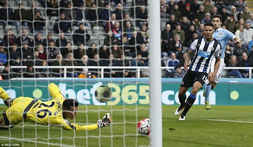 Và đó là tất cả những gì Man City có thể làm được trước một Newcastle đang bị dồn vào chân tường. Bàn thắng sớm khiến cầu thủ Man City có phần tự mãn và họ phải trả giá đắt bằng bàn gỡ hòa 1-1 của Anita. Phút 31, Newcastle thực hiện pha phản công nhanh, Anita có bóng bên cánh trái đã có pha xử lý tinh tế vượt qua Kolarov rồi tung cú sút chìm, bóng đi xoáy vào góc xa trước sự bay người bất lực của Joe Hart.