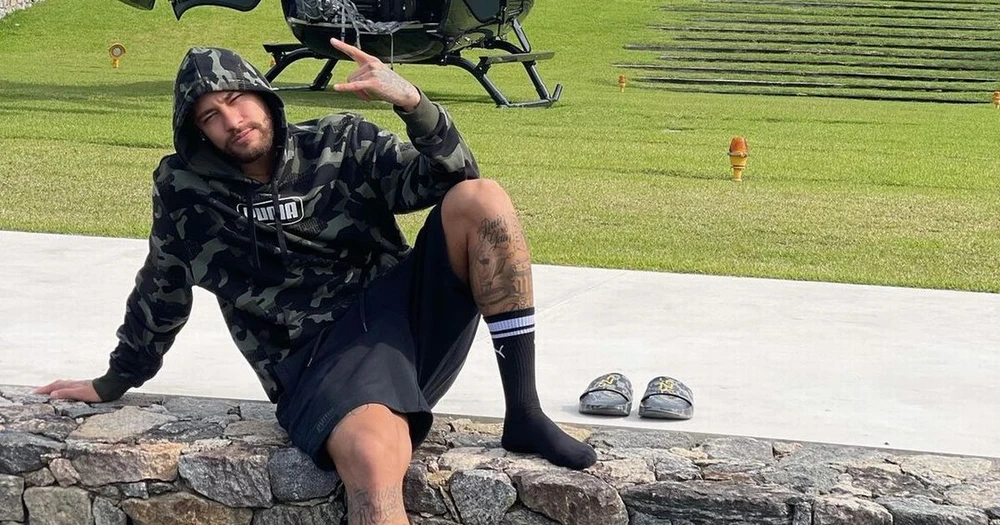 Tiền đạo con cưng của PSG lộ gương mặt rất thỏa mãn trong bức ảnh chụp chung với chiếc máy bay trực thăng Mercedes được cá nhân hóa hiện đại cho riêng anh ấy. Cầu thủ đắt giá nhất thế giới 29 tuổi với mức lương tuần PSG trả là 800.000 bảng trông vô cùng thảnh thơi khi ngồi trên bức tường gạch với tất, quần đùi và áo hoodie. Phía sau lưng Neymar là một chiếc máy trực thăng màu đen viết tắt tên đầy đủ của anh là NJR (Neymar Junior).