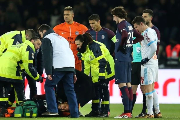 Neymar được cáng ra sân trận PSG thắng Marseille 3-0.