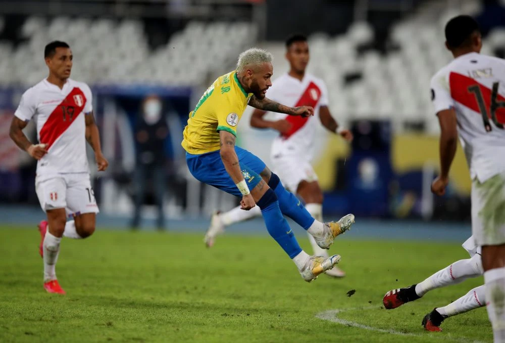 Neymar và đồng đội Brazil từng đại thắng Peru 4-0 ở vòng bảng. Ảnh: CGI.