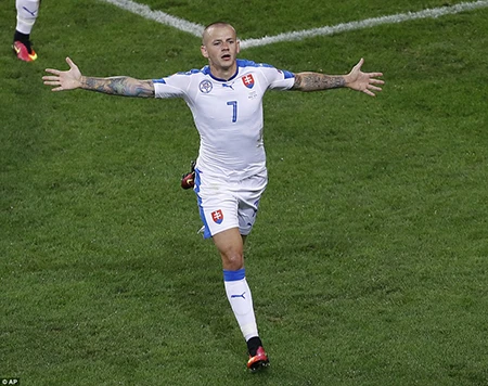 Hamsik để lại dấu ấn lớn trong chiến thắng của Slovakia với 1 bàn thắng và 1 pha kiến tạo.