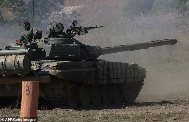 Xe tăng Nga trong cuộc tập trận ở Venezuela ngày 27-1. Ảnh: AFP
