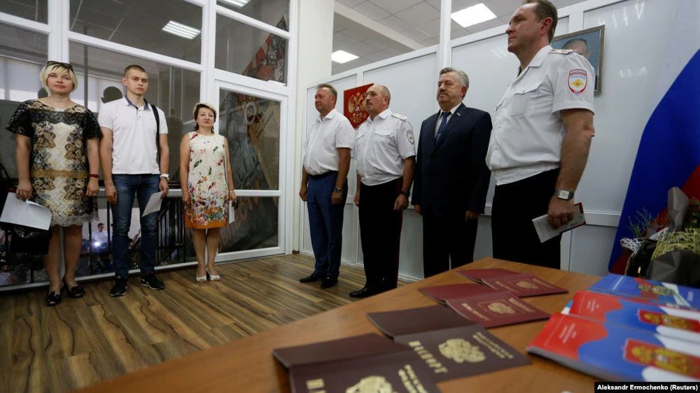 Vào cuối tháng 4, Tổng thống Nga Vladimir Putin đã ký một nghị định nhằm thúc đẩy quá trình này, cho phép cư dân miền đông Ukraine, những người mà hộ chiếu đã hết hạn, có thể có hộ chiếu mới của Nga để du lịch nước ngoài.