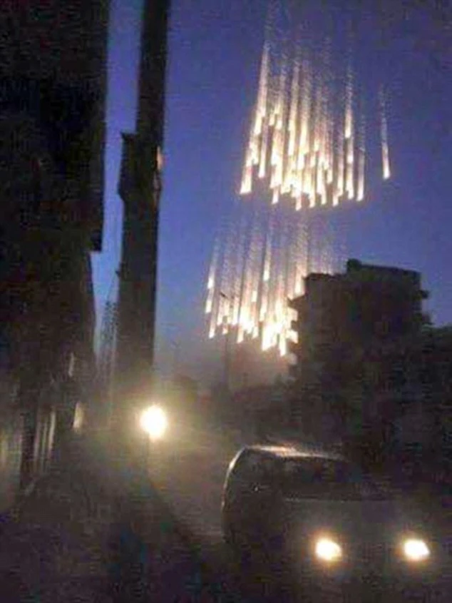 Khí phốt pho bốc cháy trên bầu trời. (Nguồn: Daily Mail)