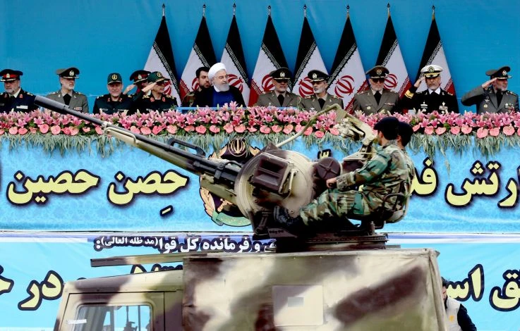 Tổng thống Iran Hassan Rouhani tham dự lễ duyệt binh ở Tehran hôm 18-4. Ảnh: GETTY