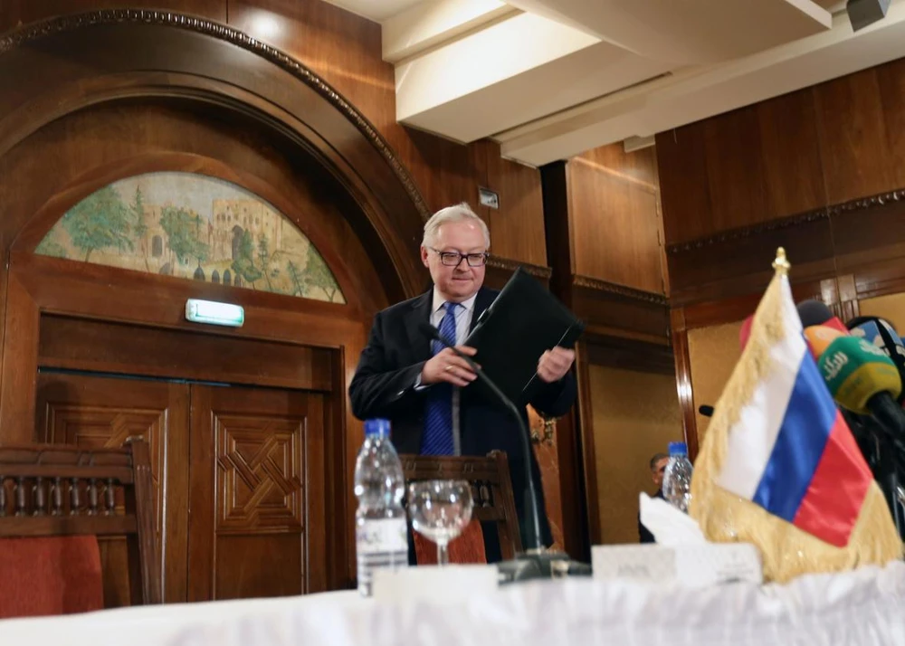 Thứ trưởng Ngoại giao Nga Sergey Ryabkov trong một cuộc họp báo. Ảnh: GETTY