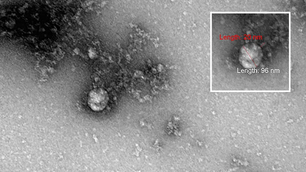 Hình ảnh một hạt virus của biến thể SARS-CoV-2 mới ở Anh được phân lập từ một bệnh nhân hồi tháng 12-2020. Ảnh: rospotrebnadzor.ru