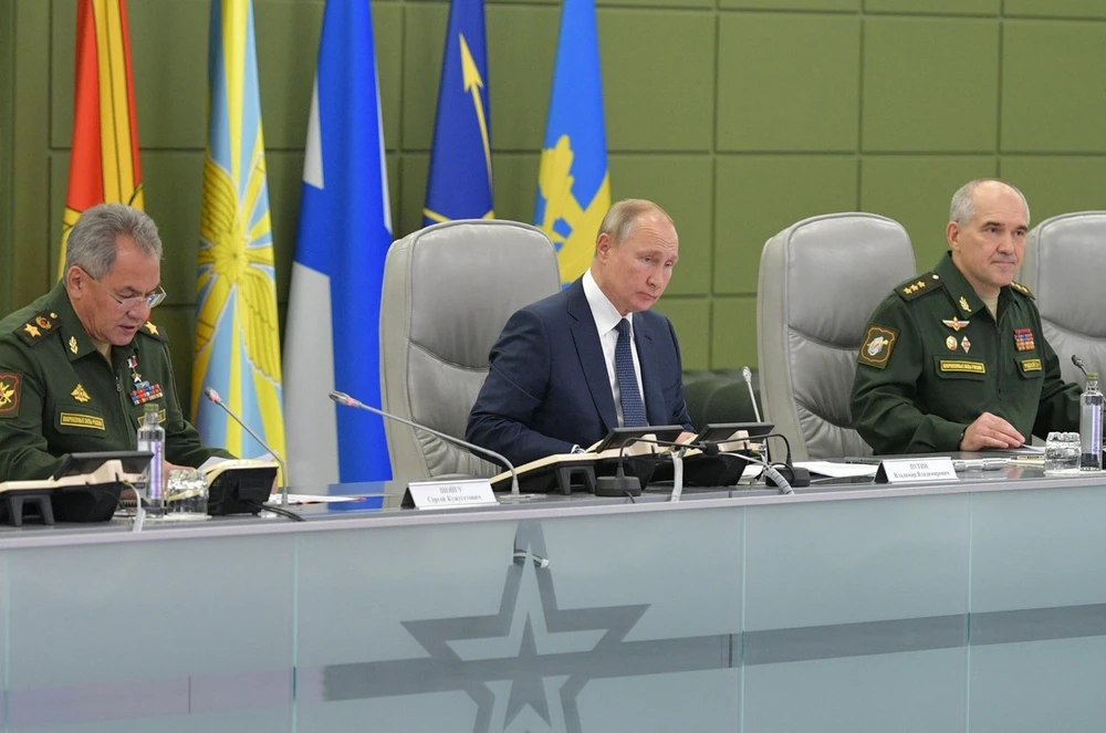 Tổng thống Vladimir Putin với tư cách là tổng tư lệnh đã giám sát cuộc tập trận từ Trung tâm Kiểm soát Quốc phòng, trụ sở chính của Bộ Quốc phòng Nga.