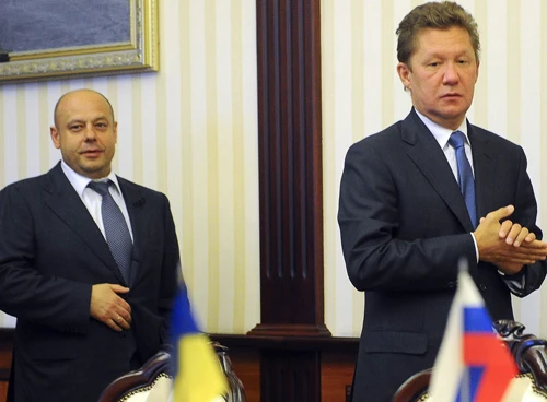 Ông Yuriy Prodan (bên trái), Bộ trưởng Năng lượng Ukraine ,và ông Alexei Miller, Chủ tịch Tập đoàn Gazprom , đã không thể tìm ra giải pháp chung cho vấn đề năng lượng - Ảnh: AFP