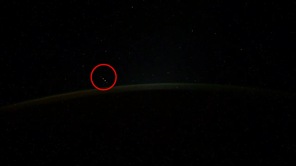 Hình ảnh được cho là nhóm 5 UFO do phi hành gia Ivan Vagner chia sẻ. Ảnh: TWITTER