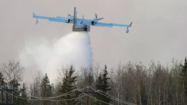 Một máy bay phun nước tham gia chống cháy rừng ở TP Fort McMurray, tỉnh Alberta của Canada hôm 6-5. Ảnh: CTV NEWS